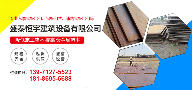 武漢盛泰恒宇建筑設備租賃有限公司主營 武漢鋼板出租 、 武漢鋼板租賃 、 武漢鋼板出售 等業務。 公司從成立至今,始終堅持誠信、公平、公正的合作核心,以誠懇、周全、細致、方便贏得市場。發展環保事業、服務建筑行業。公司在武漢市場上已贏得了各建筑商的信任與好評,取得良好的社會效益和經濟效益。 公司將一如既往地堅持誠信,公平、公正的合作原則,為建筑行業服務!為您服務!真誠期待與您合作。 24小時服務電話: 13971275523 1818695668......
